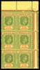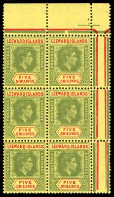 1943-4 5/- ordinary paper corner block of six, R 3/5 LP repaired value tablet o.g., with minor hinge remainder on the lower pair, the top four normal stamps unmounted. SG 112b, bb, £1375