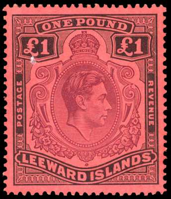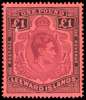 1942 (Oct.) £1 purple and black on deep carmine-red paper, HPF #60 broken lower right scroll, fine large part o.g. SG 114ae, £2000
