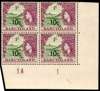1961 10c on 1/- bronze-green and purple Plate 1A-1 block of four, unmounted o.g., gum evenly toned. SG 64a, £1000