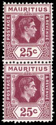 1941-9 25c ordinary paper vertical pair, upper stamp with R3/6 RP ‘IJ’ flaw, unmounted o.g. SG 259ba, £300