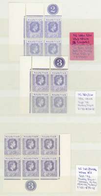 Mauritius SG 261b, c Plate blocks mint