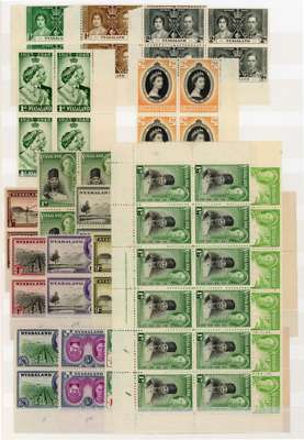 1937-54 mint collection, nearly all unmounted. 1938-44 low values (both colours of the relevant values) in blocks of ten plus 3d and 9d sheets; 1945 set in Plate blocks of four, and a few other odds. Overall toning