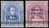 1923 1c on 10c bright blue and 2c on 12c purple, second printings with narrow bar spacing, large part o.g. SG 74c, 75, £270