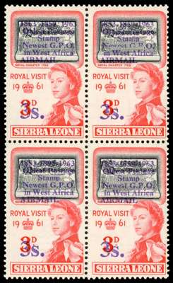1963 Postal Commemorations 3/- on 3d black and rose-red unmounted o.g. block of four, lower left stamp with R3/3 ‘1895’ error. Discreet Stolow guarantee on reverse. SG 282a, £550