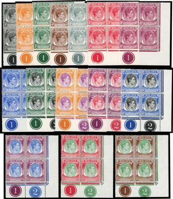 1948 perf 14 set of fifteen in matched lower right Plate blocks of four, unmounted o.g. SG 1-15, £800