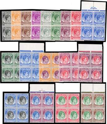 1949-52 perf 17½ x 18 set of eighteen in unmounted o.g. blocks of four, fine. SG 16-30, £1900