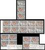 1962-6 5c red and black variety multiples, mint. Vertical strip of three, unmounted o.g., top stamp with large part omission of red, and a left marginal block of ten (5 x 2), hinged on the top left and top right stamps; stamps 1-2 and 6-8 are normal, the others show the red with a washed effect, very faint (superficially resembling an omission) on two stamps, diffused and blotchy on the other three. SG 66 vars
