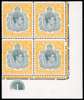 1950 (Aug.) 12/6d grey and pale orange-yellow, perf 13, unmounted o.g. Plate block of four. SG 120d