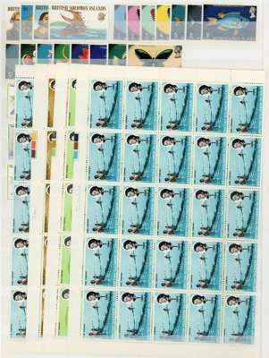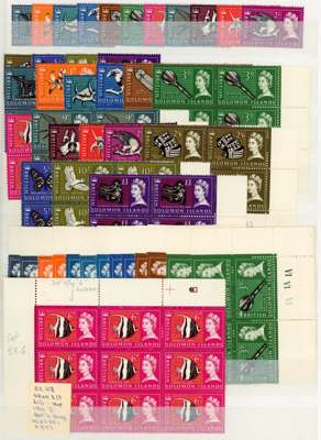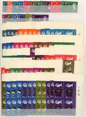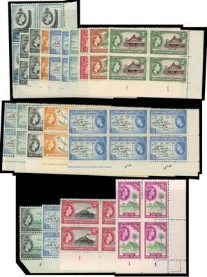 1956-76 unmounted o.g. collection with 1956-64 Plate blocks including 1964 2/6d (fine); 1965 set and Cylinder blocks of four; 1966-7 Decimal Currency both watermarks, sets and duplicated Plate blocks, the Plate blocks including sideways watermark 50c x 3, $1 x 2 and $2 x 3, plus a few later issues. Mainly with some gum toning