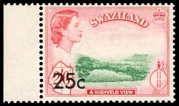 1961 25c Type II surcharge at lower left, a very fine left marginal example, fresh unmounted o.g. SG 74b, £950