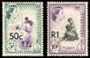 1961 50c and 1r each with Type III surcharge, unmounted o.g., light overall toning on the reverse of each but of very fine appearance. SG 75b, 76b, £1620