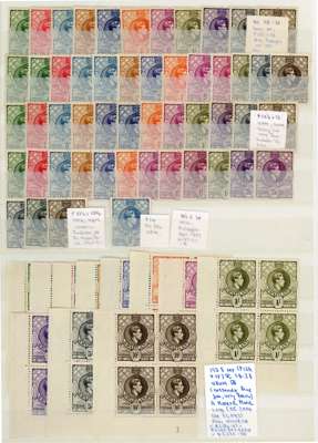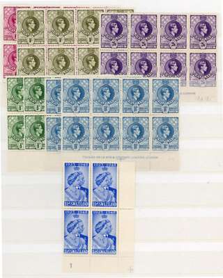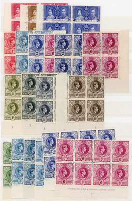 1937-54 mint collection on stocksheets, the great majority unmounted. Includes singles (these mainly hinged); first perfs in lower left corner Plate blocks of four, gum a fraction dark for these but quite a rare set; various other Plate blocks including 1938 3d deep blue, 5/-s (2), some sheets (½d, 1d, 2d) and larger blocks to 6d. Generally fine appearance but many with toned gum, viewing recommended