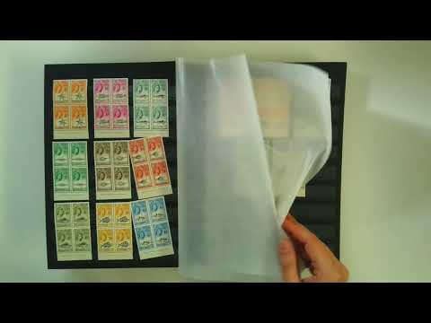 1952-65 collection of unmounted o.g. blocks in black stockbook, all with good appearance but mostly with light gum toning, or gum which is a little two-toned from poor storage. Includes 1952 set in imprint blocks (hinged on selvedge) and Plate blocks; 1954 set in Plate blocks and in imprint blocks of eight; 1960 set in imprint blocks; 1961 set in imprint blocks; 1963 Resettlement set in Plate blocks, and 1965 original set of fifteen in imprint blocks