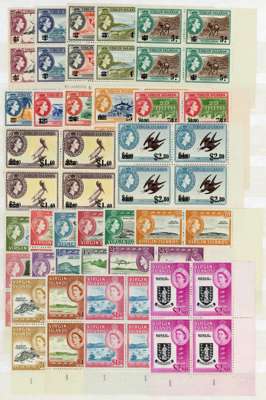 BVI 1937-64 mint collection on two stocksheets unmounted o.g. with QE II sets in Plate blocks. Includes 1938 set, with 1954, 1962 and 1964 set in singles and Plate blocks. Some have even overall toning but some are fine, viewing advised. SG 107-192