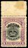 1906 1c black and purple overprinted in black, top marginal with hinge remainder on selvedge, large part o.g. Tiny toned fleck and a very small gum thin, still a good example of this rare stamp. SG 11a, £2500