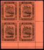 1910 $25 black on red paper lower right corner block of four, fine, with the usual dried o.g., the upper pair large part o.g. with the lower pair unmounted. SG 48, £2600