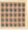 1922 Malaya-Borneo Exhibition 2c black and brown complete sheet of sixty, thirty normals plus ten each of the varieties, with Vignette Plate 2 at right. Toned o.g. with darker areas, interleaving adherence mostly affecting the outer stamps. SG 52-c, £1080