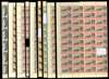 1938-53 sheets of sixty, unmounted o.g., mostly with gum toned but an impressive group nonetheless. ½d perf 13, 1d yellow-orange perf 14 with Mountaineer flaw (cream gum), 1d Three Sisters, 1½d vermilion perf 14 with cut mast and railings and davit flaw (cream gum), 1½d rose-carmine perf 14 with cut mast and railings and davit flaw, perf 13 with the same flaws plus jibstay flaw (2 sheets), 2d perf 13 and 4d perf 13 (neither with Mountaineer flaw). Fine assembly, SG 38b/42d