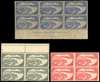 1941 unissued 15c ultramarine o.g. imprint and Plate 2 block of six, stained, reinforced, poor; 6c greenish grey top marginal block of four, unmounted brownish o.g., fine; 8c red unmounted block of four, unmounted toned o.g. but with foxed spots, the latter with 1988 RPS Certificate, ex Barber. See footnote after SG 78, £1300