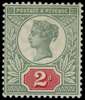 1887 2d grey-green and carmine with inverted watermark, unmounted o.g., fresh and fine, rare in this condition. SG 200Wi