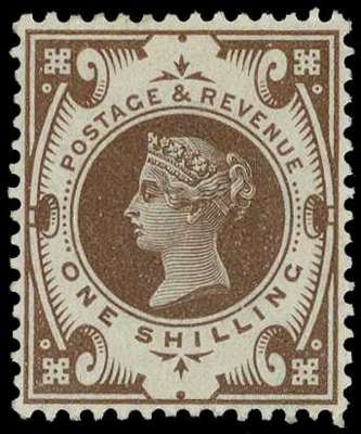 1899 1/- Colour Trial in brown on gummed, watermarked paper. Fresh, ex Verus. For SG 211