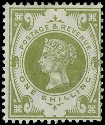 1899 1/- Colour Trial in olive-green on gummed, watermarked paper. Lightly hinged, ex Verus. For SG 211