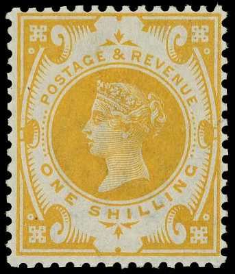 1899 1/- Colour Trial in yellow on gummed, watermarked paper. Fine. For SG 211