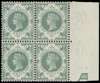 1887 1/- green right marginal block of four with part divisional ornament, from Setting I, fine unmounted o.g. SG 211