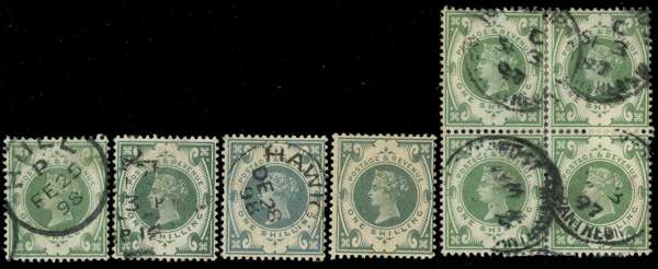1887 1/- green group showing apparent...