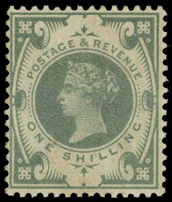 1887 1/- dull green with watermark inverted, unmounted o.g.; light overall toning but still a respectable example of this rare stamp. SG 211Wi