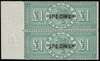 1891 £1 green vertical left marginal pair, unmounted o.g., overprinted SPECIMEN Type 11. Marginal bend, otherwise very fine. SG 212s