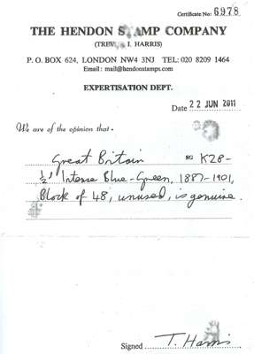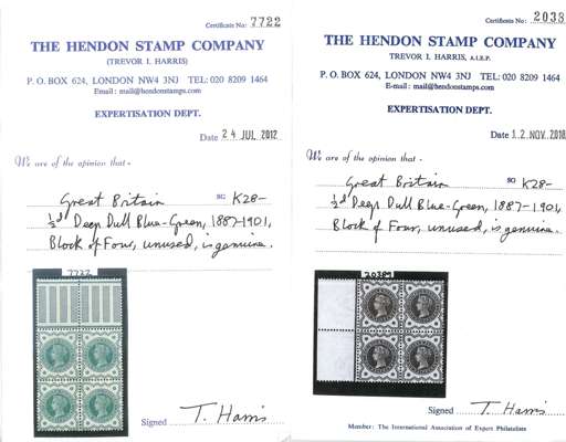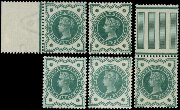 1900 ½d blue-green shades, unmounted o.g. Deep dull blue-green, two examples, each with Hendon Certificate or copy (2012, 2013); intense blue-green (Hendon Certificate copy, 2011); very deep blue-green and pale dull blue-green. SG 213 var