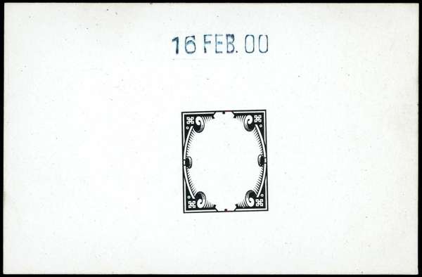 1899 1/- Die Proof of the frame in black on glazed card (92 x 60mm), dated 16 FEB 00, very fresh and fine. Ex Aureum. For SG 214