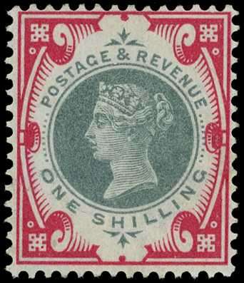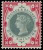 1900 1/- green and carmine with inverted watermark, fine and fresh, large part o.g. Scarce. SG 214Wi