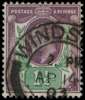 1902 1½d dull purple & green example with Plate 4 R10/2 retouched tablet to left of value and top of '1', Windsor CDS AP 14 03. SG 221 var, M8d