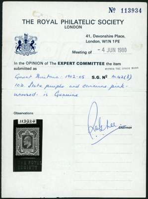 1902/10 De La Rue 10d slate-purple and carmine-pink, unmounted o.g. RPS Certificate (1980). SG 254 var, M42(3)