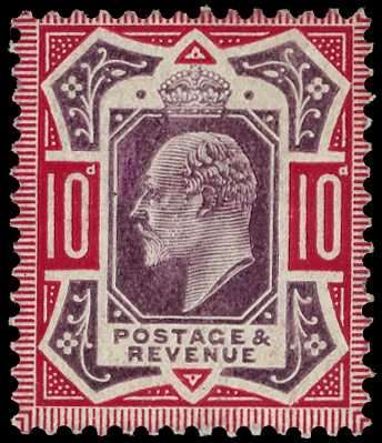 1902 10d slate-purple and deep carmine on chalky paper, unmounted o.g. SG 255 var, M43(3)