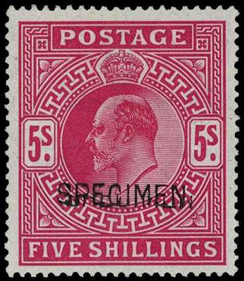 1902 5/- bright carmine overprinted SPECIMEN Type 16, unmounted o.g. RPS Certificate (20130. SG 263s, M51(1)s