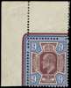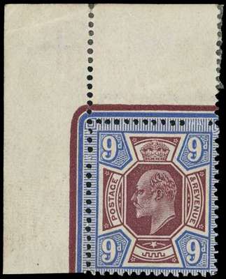 1912 9d slate-purple and cobalt-blue. Upper left corner example, the selvedge with hinge remainder and bends, the stamp fine unmounted o.g. SG 308