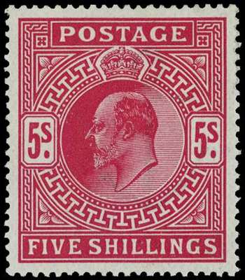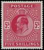 1911-3 5/- carmine, unmounted o.g., minor bend. SG 318
