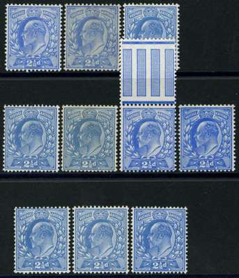 1902-11 2½d unmounted o.g. range, fine unless stated. SG 230-1 (latter with light overall toning), 276, 283-4, M16(1), (4), M17(1), (3), M18(1), latter with minor bend