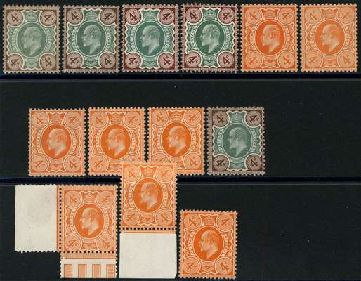 1902-12 4d o.g. range (13), all fine unmounted unless otherwise noted, SG 235-241, 278, 286, M23(2) hinged, M26(2) hinged, M27(2), (3)