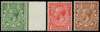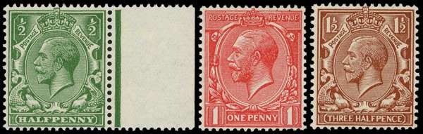 1912-24 Royal Cypher ½d green (right marginal), 1d scarlet and 1½d red-brown each o.g., without watermark. 1d lightly hinged, the ½d and 1½d unmounted o.g. SG 351, 357, 362 var; N14b, 16a, 17a