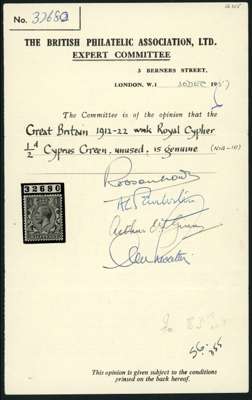1912-24 ½d very yellow (Cyprus) green unmounted o.g., BPA Certificate (1957). Rare. SG 353
