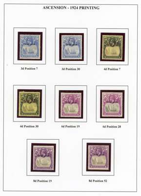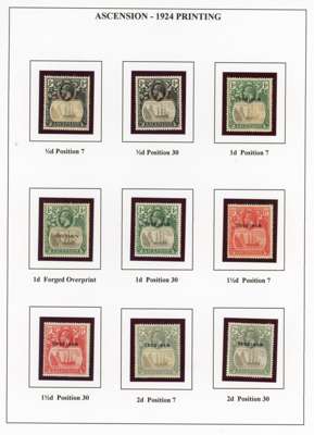 1924-33 positioned examples all overprinted SPECIMEN Type D16. A most unusual, if not unique, collection on display pages with ½d #s 7 and 30; 1d #7 (vignette partially faded), 30 and a faked overprint; 1½d #7 and 30; 2d #7 and 30; 3d #7 and 30 (latter a few short perfs); 4d #7 and 30; 5d #48; 6d #19 and 28; 8d #19 and 28 (latter no gum); 1/- #19, 30 and 39 (latter no gum); 2/- #19 (two short perfs at top), 30 and 52 (latter no gum); 3/- #19 and 30. SG 10s-20s