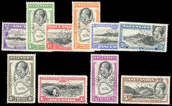 1934 Pictorial set perforated SPECIMEN Type D19, fine large part o.g., the 1d with R4/5 ‘teardrops’, very rare. SG 21s-30s, £550+