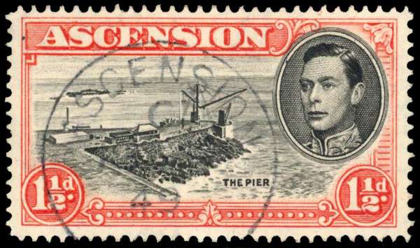 1949 1½d black and vermilion, perf 14, R3/1 cut mast and railings, fine used. SG 40cb, £600