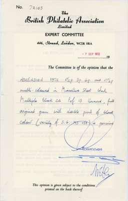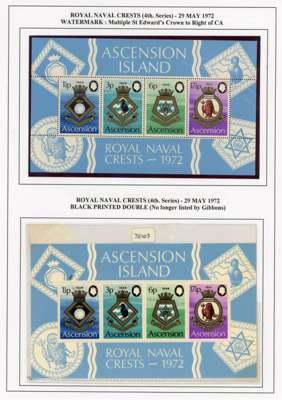 1972 Naval Crests (4th series) miniature sheet, unmounted o.g. with watermark Crown to right of CA. Also a further unmounted o.g. miniature sheet with black printed double, BPA Certificate (1972). SG MS158w, £325