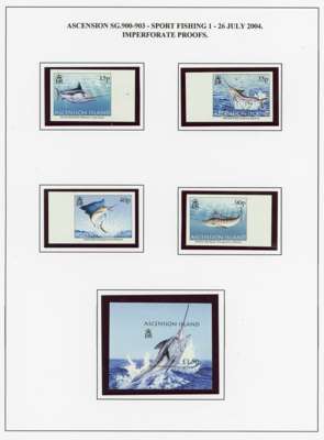 2004 Sport Fishing (first series) set of four and miniature sheet, imperforate proofs, unmounted o.g. The set all marginal. SG 900-MS904