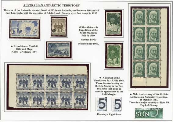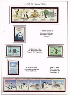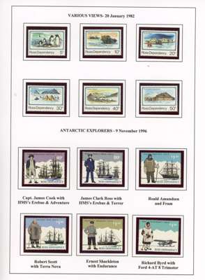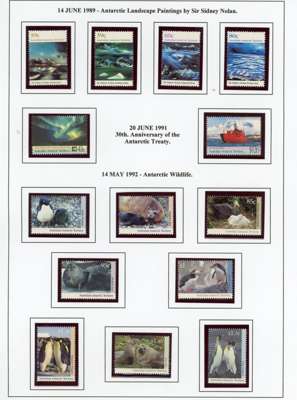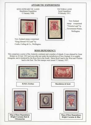 Display collection of the smaller Antarctic issuing entities, unmounted o.g. or fine used. KE VII Land and Victoria Land 1ds, each used on piece; Ross Dependency issues to 1998, including 1967 3c and 15c unmounted; Australian Antarctic Territory issues to 1995. STC £756